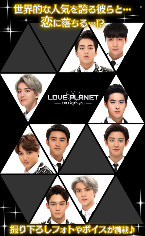 EXO迷们的福音,《Love Planet ~EXO with you~》上架双平台了!男朋友们再也不用纠结“女朋友喜欢EXO,要不要和她分手”的问题!真是个好消息呐~ 据说火遍全亚洲的EXO已经不满足于在舞台上蹦蹦跳跳地唱歌了,他们入侵了手游界_(:зゝ∠)_ 由allfuz与Cybi详情>