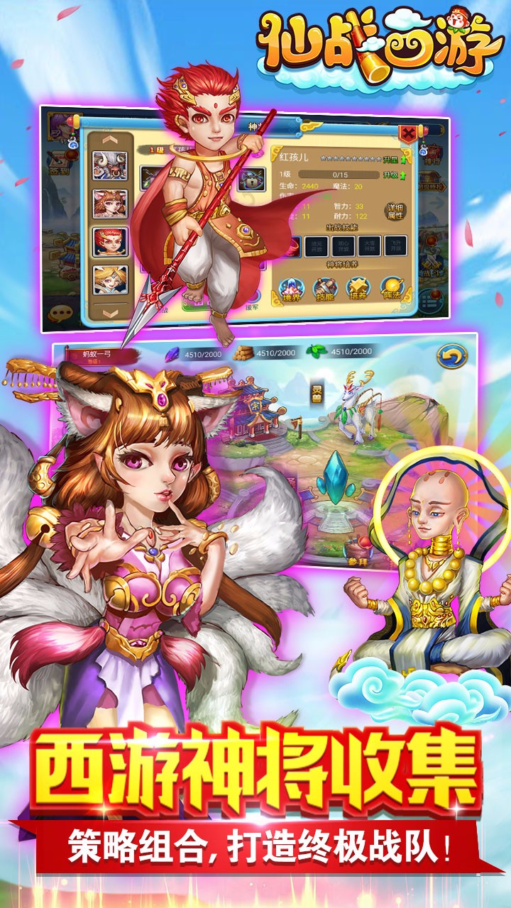 《仙战西游》是一款以西游记为题材的放置类[详细]《仙战西游》是一款以西游记为题材的放置类RPG手机游戏,摒弃烦人枯燥的手动刷怪玩法,带广大玩家轻松挂机升级,即使离开游戏,依然为你努力地打怪刷装备!操作轻松简单,专注策略能力,各种有趣玩法应有尽有!收集西游神将,选择培养方向,学习技能,助你一路降魔。竞技争锋、帮会激战,跨服争霸,极限挑战!闲暇之余,还可以采集宝石,钓钓鱼,花样玩法等你发掘!